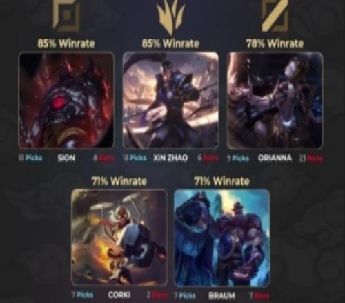 体育资讯10月22日报道宣称 外媒统计S15全球总决赛至今为止各位置胜率最高英雄,具体如下: